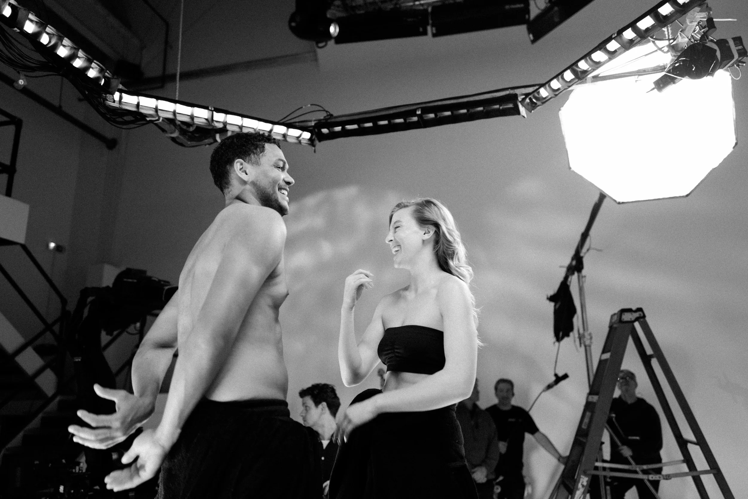 The original script had them peeling the latex off each other, but I envisioned a more fluid and evocative moment. So, we captured our cast in 3D and recreated their suits entirely in CG.